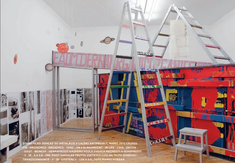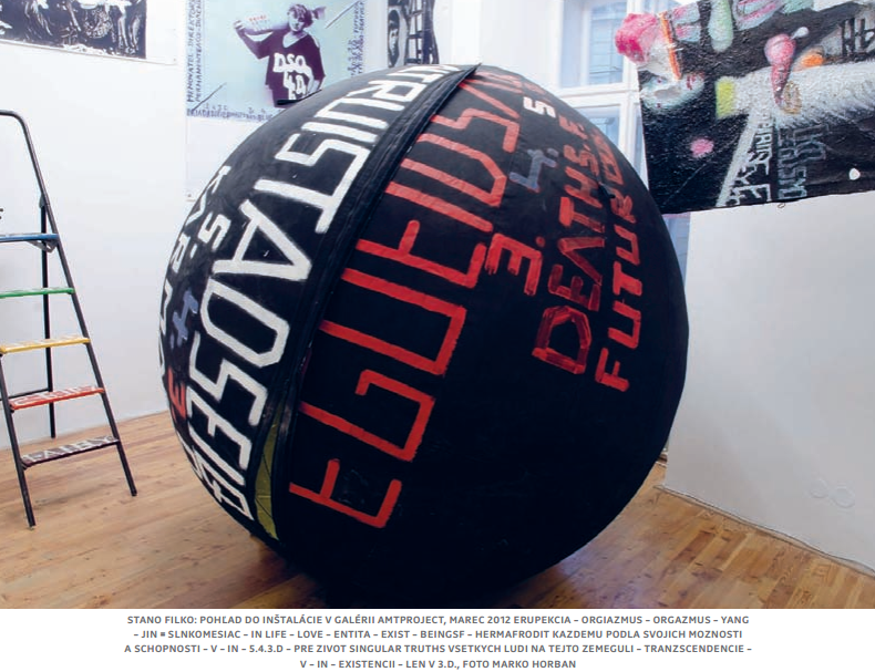 ***, kde vám ich určite budú chcieť predať, bez ohľadu na to, či tam idete s kurátorom, ktorý napríklad chce písať do artfora a nechce kúpiť, ale spoznať. **** Výstava, posledná autorská výstava Stana Filka – erupekcia-orgiazmus-orgazmus-yang-jin = slnkomesiac-in life-love-entita-exist-beingsf-hermafrodit kazdemu podla svojich moznosti a schopnosti-v-in-5.4.3.d-pre zivotsingular truths vsetkych ludi na tejto zemeguli-tranzscendencie-v-in-existencii-len v 3.d. 24. marec 2012 – 29 jún 2012 Táto výstava bola neskôr reinštalovaná v Neapolskej fondácii Morra Greco. Kurátorovala ju Mira Keratová.