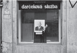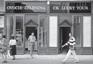 Priznávam, že som si na scénu z fılmu, ktorý som videl pred mnohými rokmi, spomenul len nedávno, pri prehliadaní fotografıí v knihe Ľuba Stacha: Obchodná 1984-2014 (Bratislava: Vydavateľstvo O.K.O., 2014) zachytávajúcej výklady na Obchodnej ulici v Bratislave. Ku knižnému projektu sa v tomto roku pridala rozsiahlo komponovaná výstava v Satelite a miestne špecifıcká inštalácia vo vybraných výkladoch na Obchodnej ulici, prezentujúca výber z dlhodobého fotografıckého konceptu (organizátorom projektu je OZ Obchodná ulica a okolie, ObchodnaUlica.sk). Scenáristický príbeh fılmu tu na dobúda reálne kontúry. Je skutočným „mapovaním“ miesta, zmien ktoré sa na ňom počas tridsiatich rokov udiali. Je nielen dôkazom pre mien vizuálnej stránky miest, obchodov, zmien ich funkcií, zachytením štýlu či aktuálnej módy v prípade snímania náhodných chodcov, ale má aj závažnejší, sociohistorický charakter. Fotografıe zaznamenávajú politické premeny, sú dôkazom o udalostiach, ktoré natrvalo determinovali spoločenské prostredie. Ich zvláštnosťou je, že ieto premeny sú evokované skôr nenápadne, cez indexové znaky udalostí. Sú sprítomnené cez vizuálnu a textovú stránku plagátov a agiačných letákov, oznámení a výziev, aranžérsky mi vstupmi, tendenčnými a informatívnymi plagátmi vylepenými pri príležitostiach sviatkov. V iných, až absurdne pôsobiacich zátišiach, sa vo výkladoch objavujú parte zosnulých politických predstaviteľov. Politická zmena roku 1989 prináša odlišnú rétoriku a výzvy k demonštráciám a štrajkom, zatiaľ čo prvé roky slobody aj a vysilnejúceho nacionalizmu a „hejslováctva“. Obdobie rodiaceho sa kapitalizmu zase charakerizuje silný vstup reklamy, nekoordinovaného vizuálneho prekrytia „fasády“ ulice, problém udržateľnosti prevádzok, náhle zmeny majiteľov či vstup veľkých spoločností a obchodných reťazcov. Obchodná ulica je teda miestom, uličnou tepnou, na ktorej pulze je možné vysledovať mnohé premeny celého mestského organizmu.