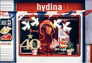 Ústredným motívom Stachových fotografıí sú výklady. Výklad je zvláštnym priestorom, rozhraním medzi exteriérom ulice a interiérom predajne. Je priestorom určeným na prezentáciu, miestom expozície tovaru. Pred rokom 1989 boli výkladné skrine zároveň výlepovými plochami, ktoré udržiavali účelovú „masku“ ideológie stále „pri živote“. Hoci už v 80. rokoch sa stali plagáty a heslá „vizuálnym smogom“, ktorý chodci takmer nevnímali, v dôsledku ich permanentnej a frekventovanej prítomnosti výklad musel byť na významné štátne sviatky či pri príležitosti historických udalostí vždy vyzdobený. Každý si uvedomoval (podobne ako vedúci obchodu so zeleninou v Havlovej Moci bezmocných), že nejde už o presvedčenie, ale skôr o rutinu. Ako poznamenal o období postsocializmu český sociológ Josef Alan; ofıciálny hodnotový systém sa vyprázdnil, premenil sa na účelovú fasádu a jeho implementácia do správania niesla znaky formálneho rešpektovať, no zároveň si „myslieť svoje“. Absurdné „asambláže“, ktoré fotografıe dokumentujú, sú prepojením ideových hesiel či výziev s produktmi alebo názvami obchodov a služieb. Dnes je absurdita výkladov spojená skôr s montážou rôznorodých produktov, reklamným vizuálom a tovarom určeným na „zvádzanie“ chodca. Česká literárna teoretička Daniela Hodrová hovorí o výklade ako nájdenej asambláži. Je často neuvedomenou montážou pred metov, produktov, obrazov a textov. Jeho aranžmán vytvára zátišie vystavujúce sa pohľadom ako nejaké dielo, inštalácia. Zároveň je symbolom dočasnosti, pominuteľnosti. Vo výklade sa ulica zrkadlí ako motív vanitas. Sklo, ktoré vytvára mestský závoj a oddeľuje reálnu ulicu od miesta expozície, tovaru, ktorý je v dnešnej konzumnej dobe symbolom túžby. Premenlivosť a prchavosť túžby súvisí so stále novou potrebou uspokojovať ju, respektíve ju uspokojovať stále novými produktmi. Stachove fotografıe poukazu jú aj na tento odlišný princíp ulice: socialistického mesta, ktoré je verejným, štátnym etatizmom a ideológiou presiaknutým priestorom, a dnešného mesta; ktoré je sprivatizovaným priestorom, kde súkromný, komerčný profıt stojí nad verejným záujmom. V prípade mesta socialistického i toho dnešného kapitalistického je výklad istým obrazom charakteru spoločnosti. A to nielen v efekte zrkadlového odrazu. Je iluzívnym princípom, miestom rozporu medzi túžbou a skutočnosťou, reálnou potrebou a ilúziou. Je v podstate vždy miestom istej propagácie, i keď sa premieňajú prostriedky, akým je idea manifestovaná.